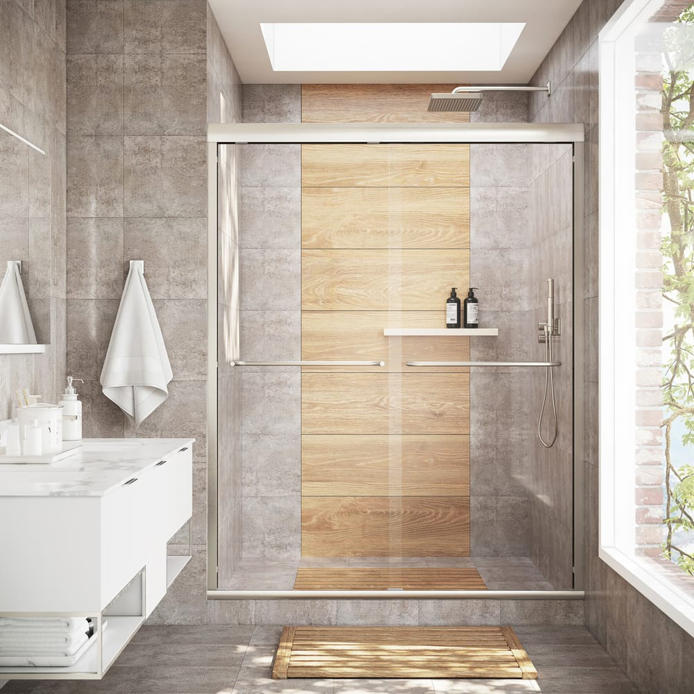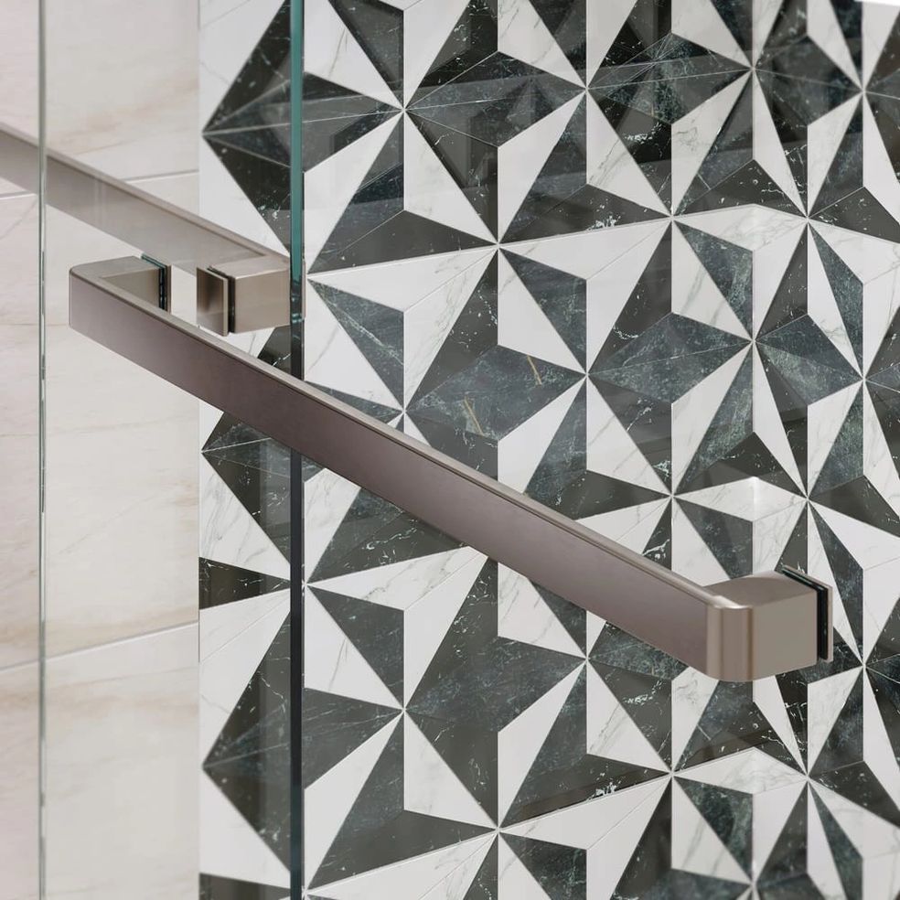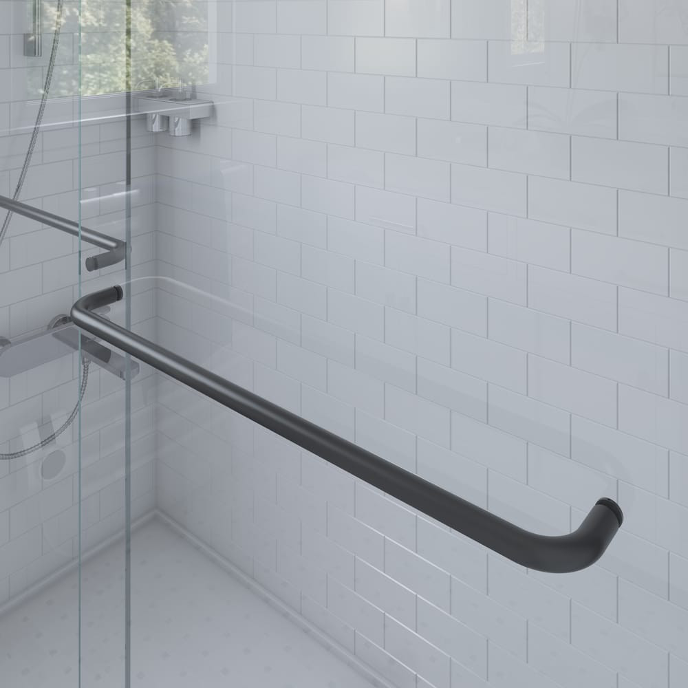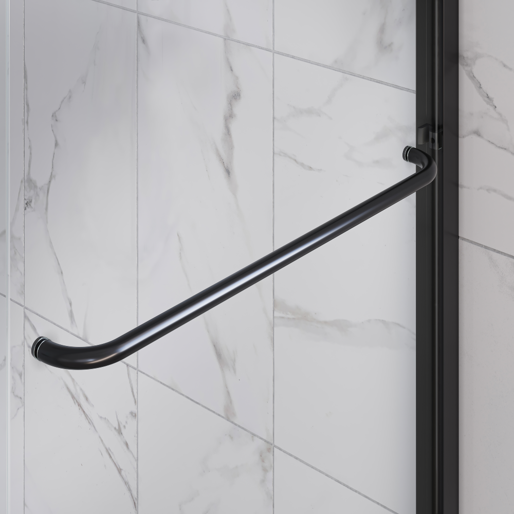 Made with adjustable 58-60″ width and 62″ height. Comes with 5/16″ tempered safety glass. Available in Matte Black, Brushed Nickel, and Polished Chrome.