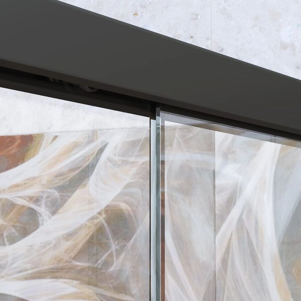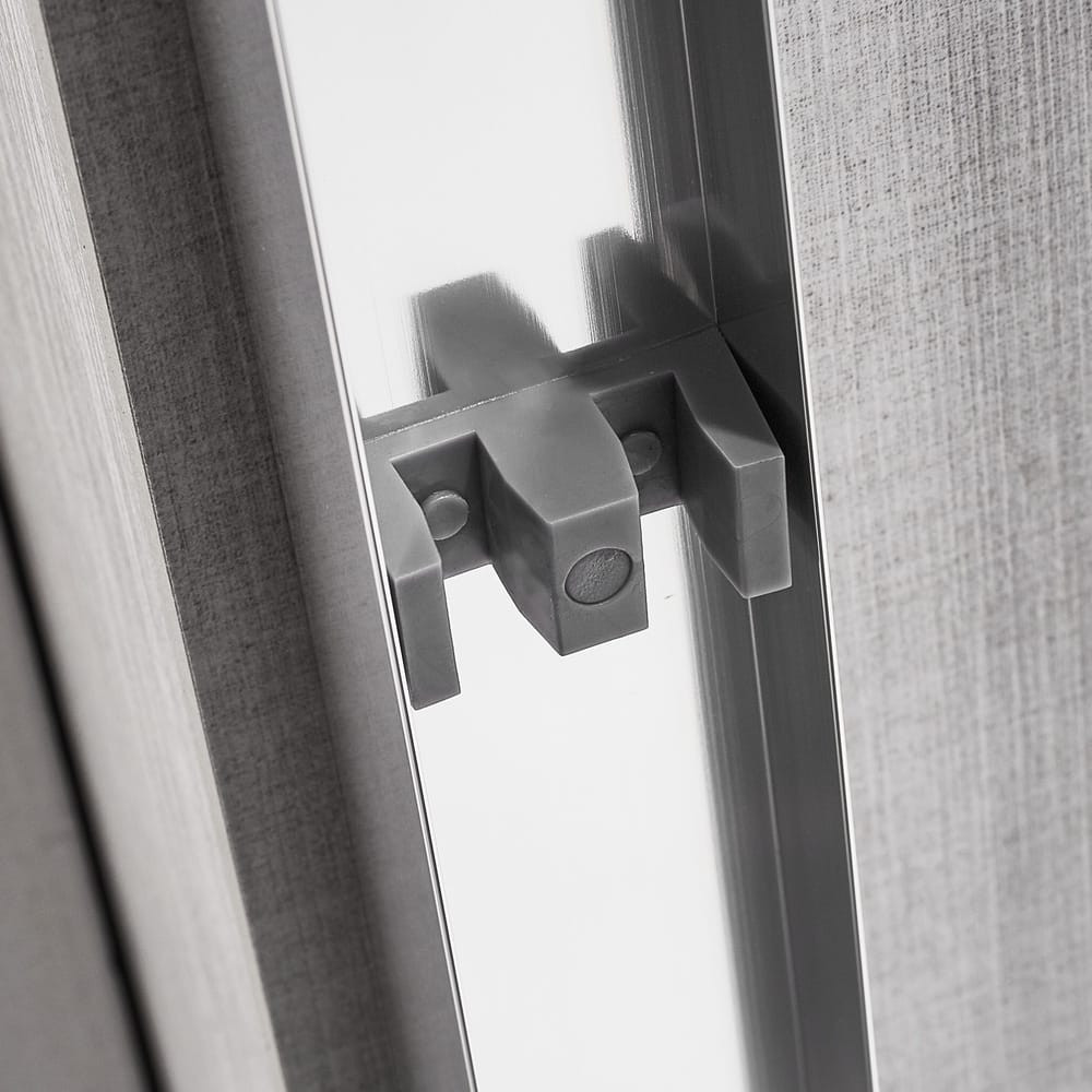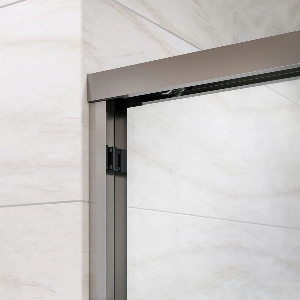 Addison’s set features frameless bypass sliding doors hung on silent top-rollers with no wall profiles and a low entry sill for a clean, open look.