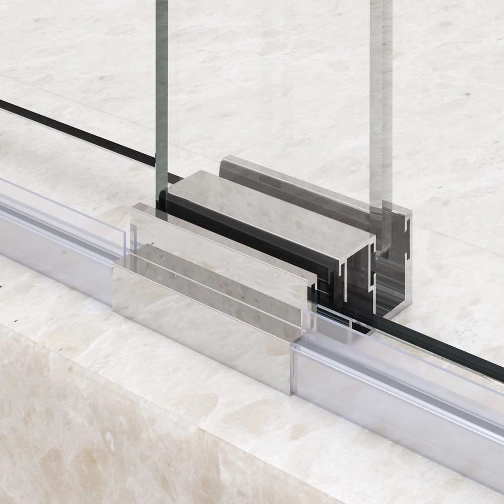 San Clemente follows the Addison style of top-rollers and frameless glass, with optional wall profiles.